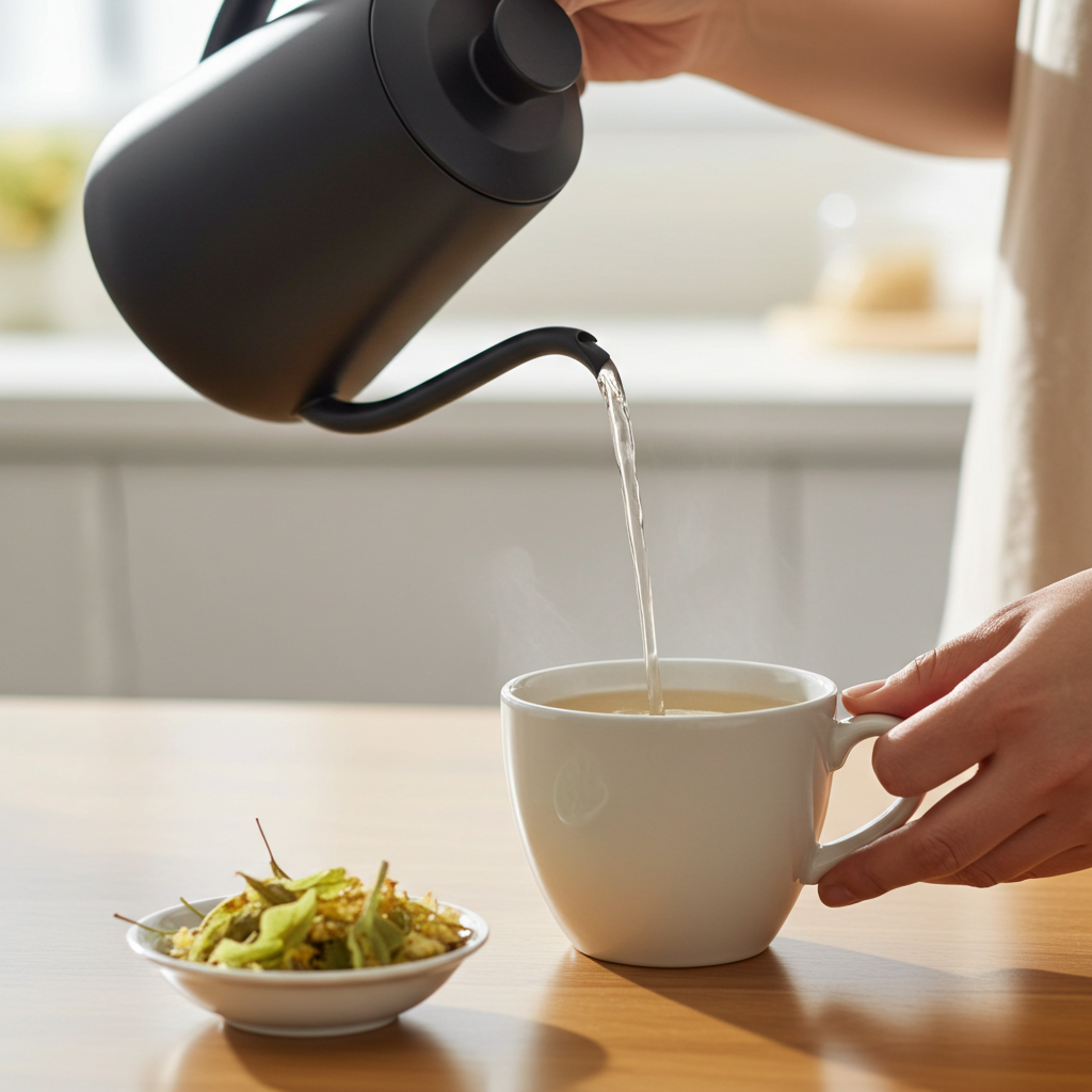 To make linden blossom tea, pour boiling water over 2 teaspoons of cut and dried linden blossoms in a cup of water (approx. 180 ml). The linden blossom tea should then be left to steep, covered, for around 10 minutes and can then be sweetened as desired and enjoyed warm.