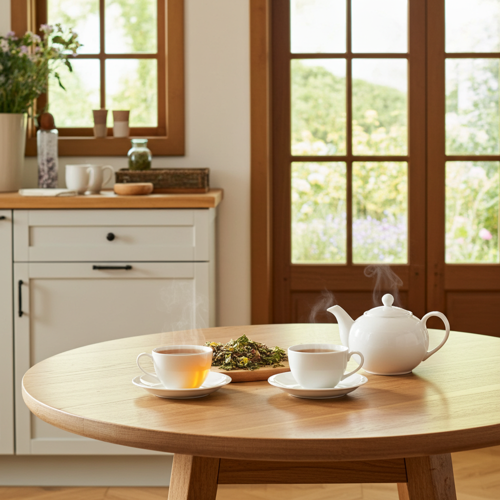 Mélisse, bruyère, menthe poivrée, camomille, feuilles de fraisier, fleurs d'oranger.